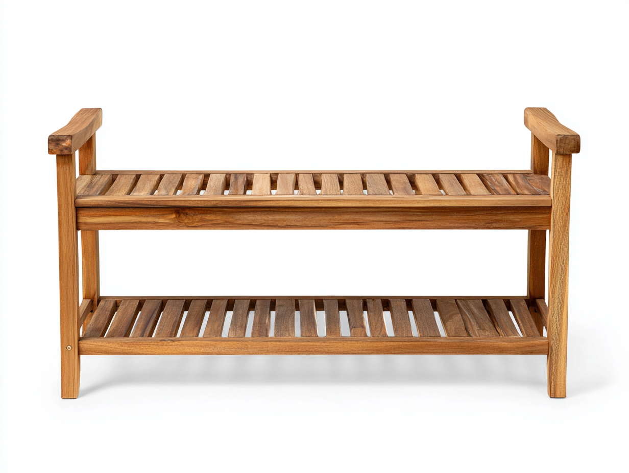 Panca da giardino in legno naturale con ripiano 120x40x45 cm - naturale - design funzionale per esterni